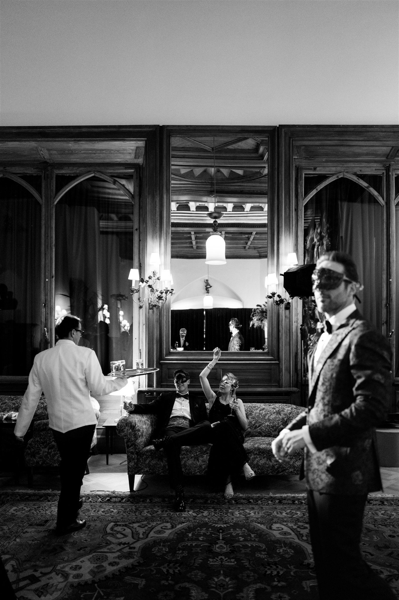This came from our obsession with fashion, treating the moment like a campaign happening inside the party, shot at 20mm, f/9, 1/400 with flash to control the harsh mountain light. The composition is structured with strong lines and clear geometry, but within that we leave space for movement and small interactions to bring it to life. It feels controlled but still real, and that overlap between something constructed and something unpredictable is what we love.