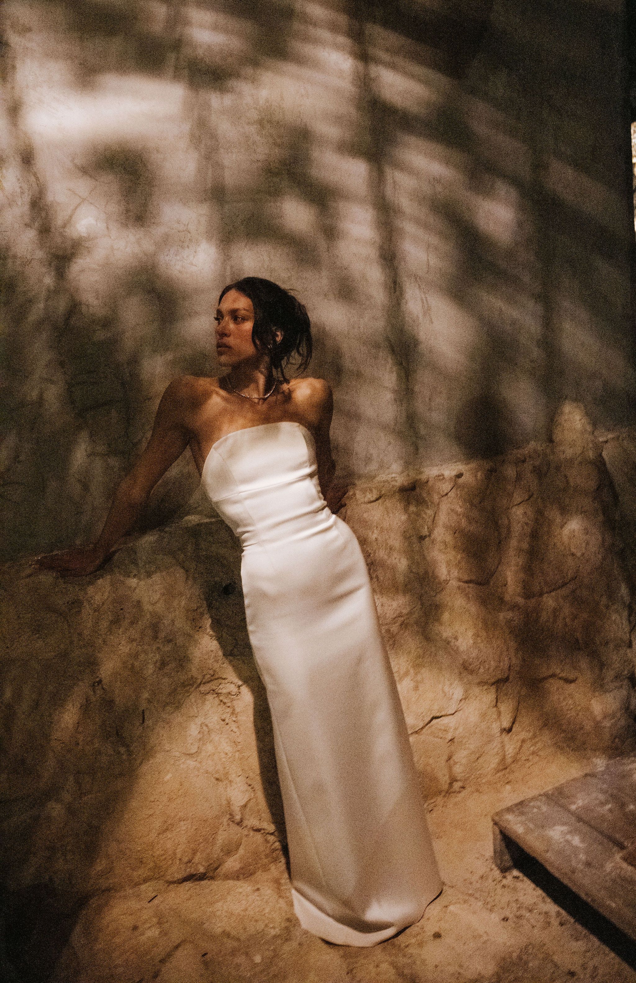 I noticed this really interesting mesh-like light pattern casting shadows across the wall. The texture immediately caught my eye, so we paused for a quick portrait before heading upstairs for the outfit change. Moments like this are my favorite, completely unplanned, just noticing interesting light and taking advantage of it while it’s there. The ambient light created this beautiful layered shadow that added depth and mood to the image. This one was also photographed on my Sony using only the natural light in the space.
