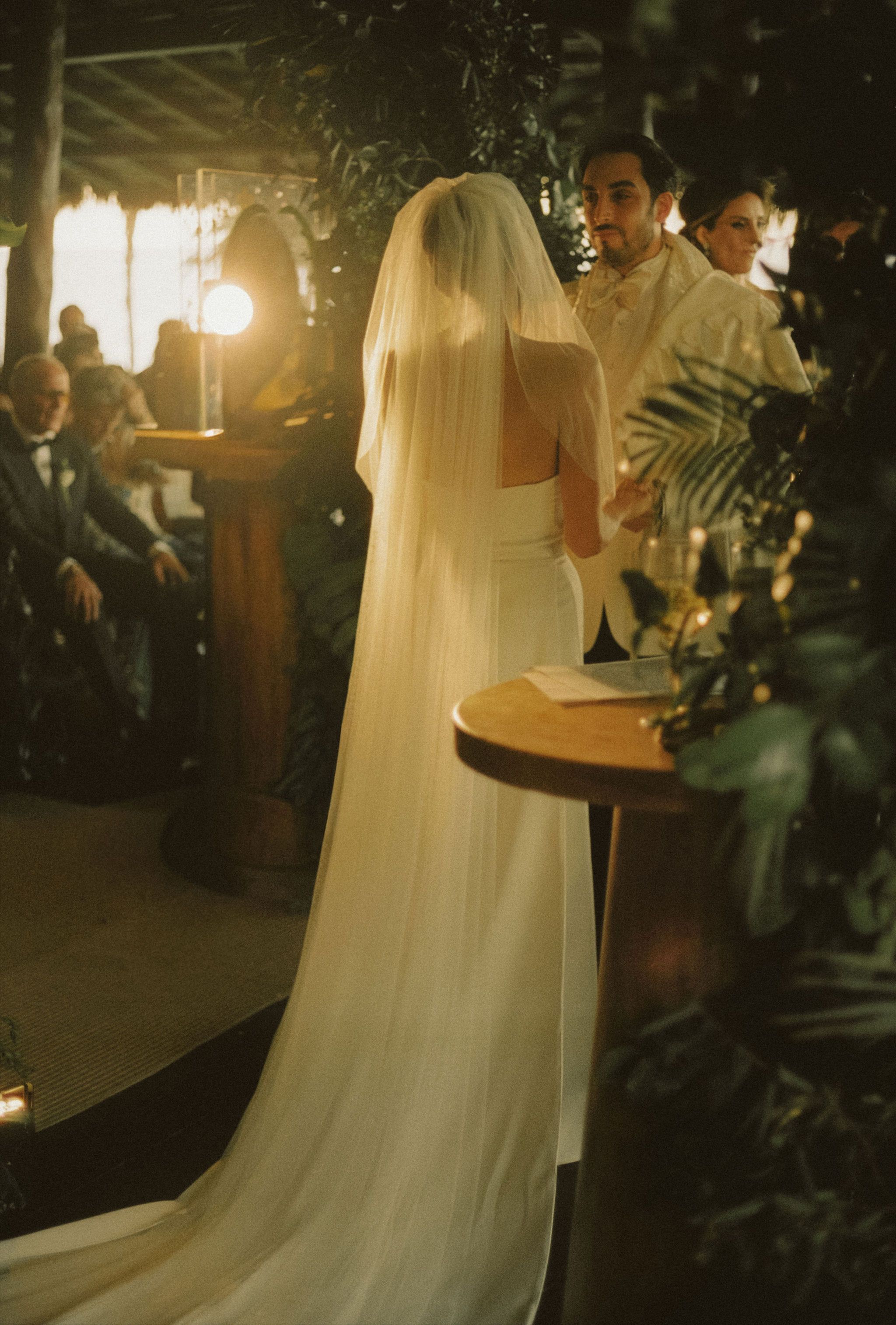 “We typically rely heavily on natural light, but in this environment a small amount of controlled light helped elevate the scene while keeping the atmosphere authentic. After the first kiss and as the couple walked back down the aisle, I transitioned to flash to maintain consistency and energy in the images. I also alternated between film and digital throughout the ceremony to keep the frames visually dynamic.”