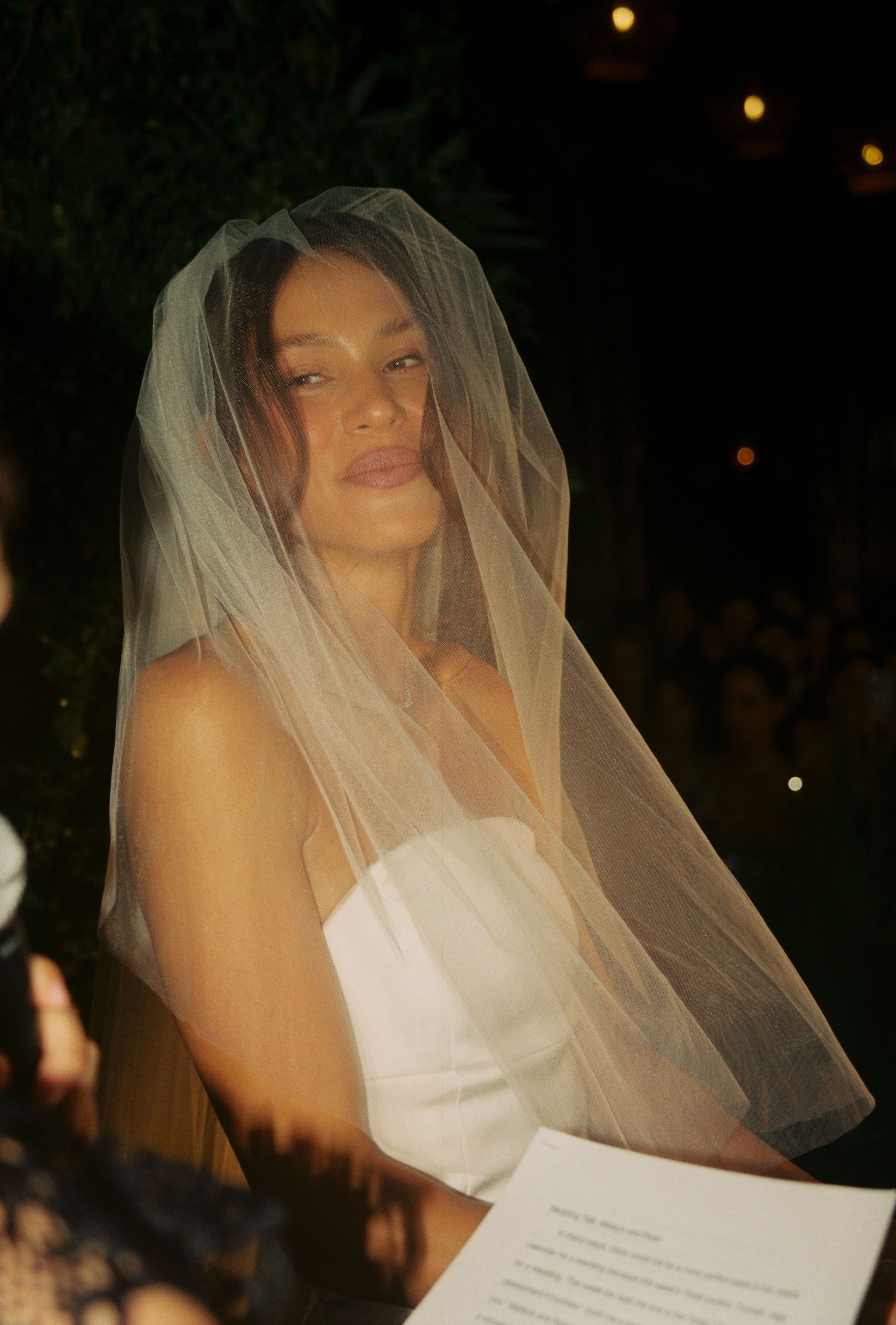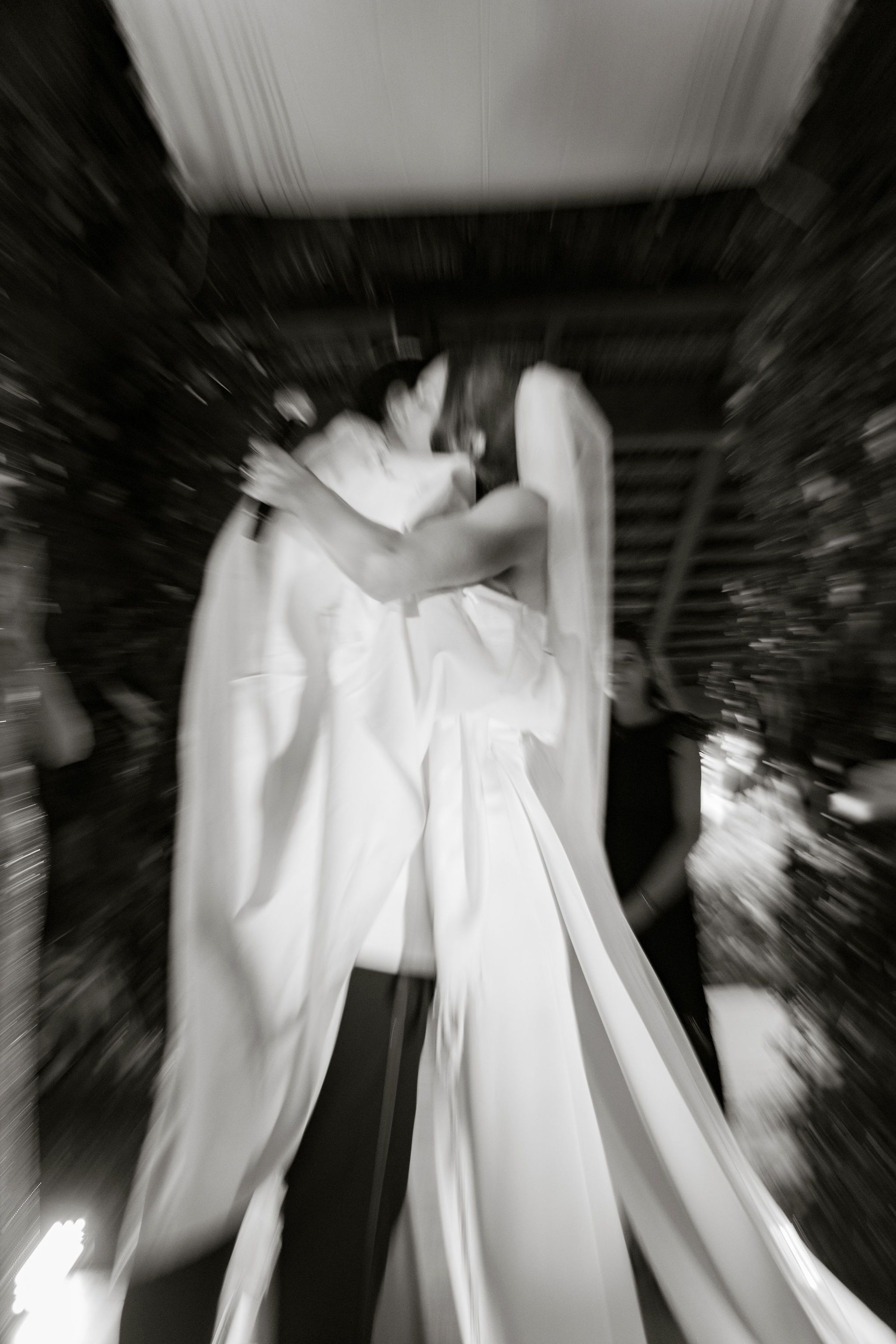 “The ceremony space was actually quite dark and lacked naturally interesting light. To solve this, we introduced a very subtle continuous light, set to roughly 5%, positioned to gently illuminate the bride from the side and highlight the texture and movement of her dress as she reached the end of the aisle.”