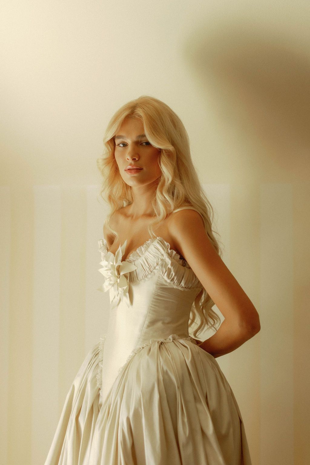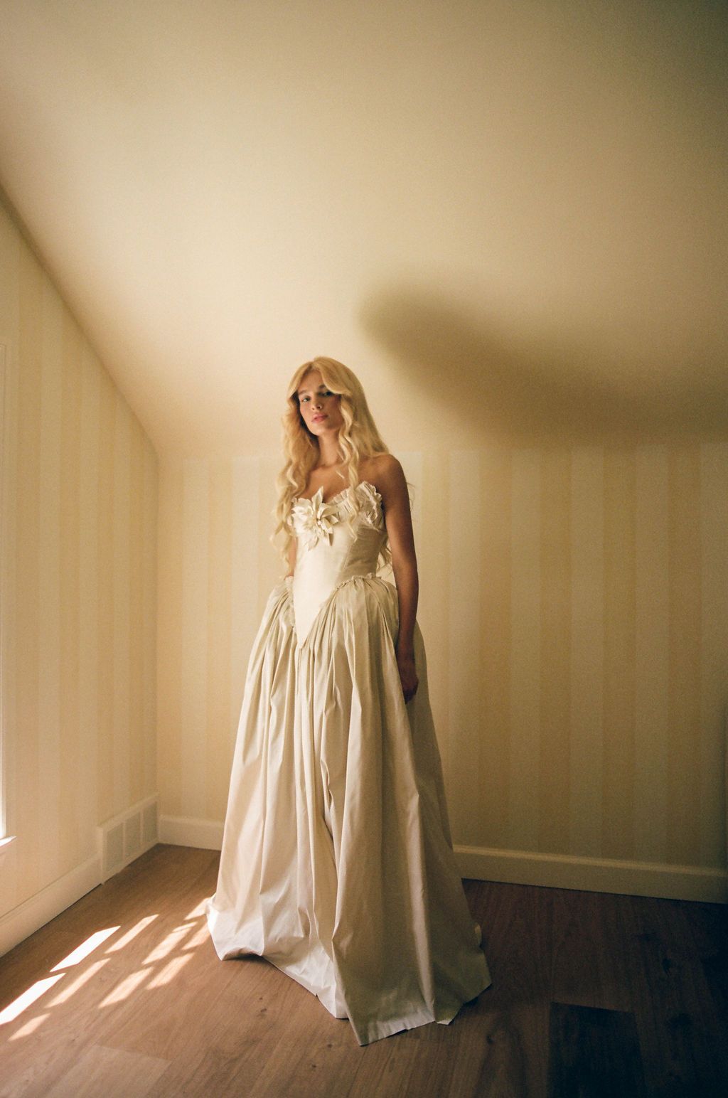 We (literally) ran down the street to find the front door open and this dining room area became our set for maybe eight minutes. I love the contrast of a stunning human wearing a fancy gown in some dilapidated space. I grew up doing similar shoots with my friends with thrifted outfits and railroad tracks (hello, Tumblr) and had the same familiar thrill running through me after knowing that we had just struck gold.