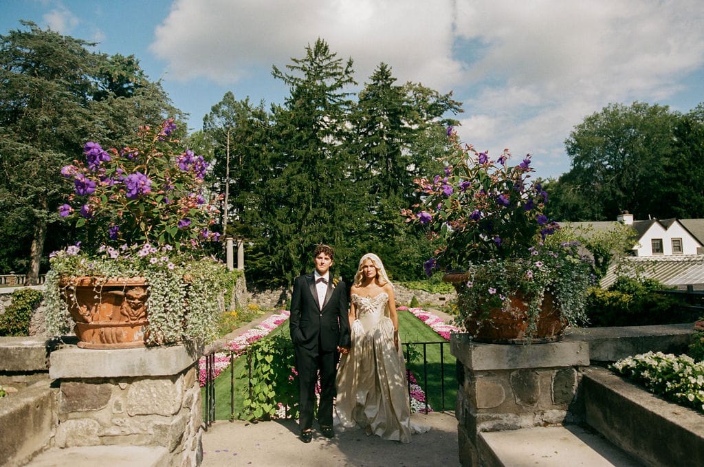 The venue, the couple’s old high school, had endless options for locations for portraits. Some like the pink and white garden that were particularly sentimental to the couple (but not in the best light) and others that offered more even or interesting lighting.