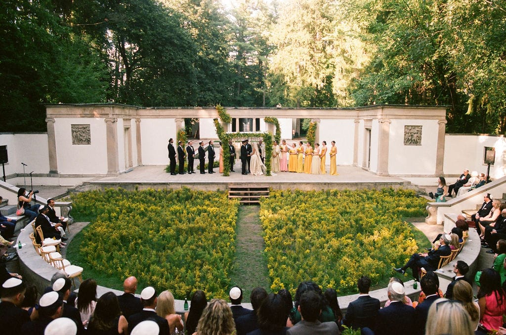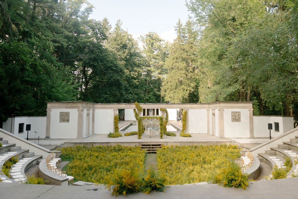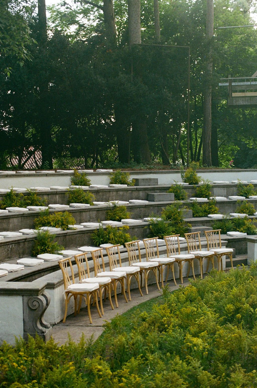 A few minutes later, I got a text from her that simply said, “You’re going to want to shoot this yourself.” I made my way through the woods to find the amphitheatre completely transformed. It was incredible — vast, detailed, and we had less than ten minutes to capture it before guests began to arrive. We worked quickly, moving from wide shots to tight frames, with Serena focusing on digital safeties while I shot both medium format and 35mm.
