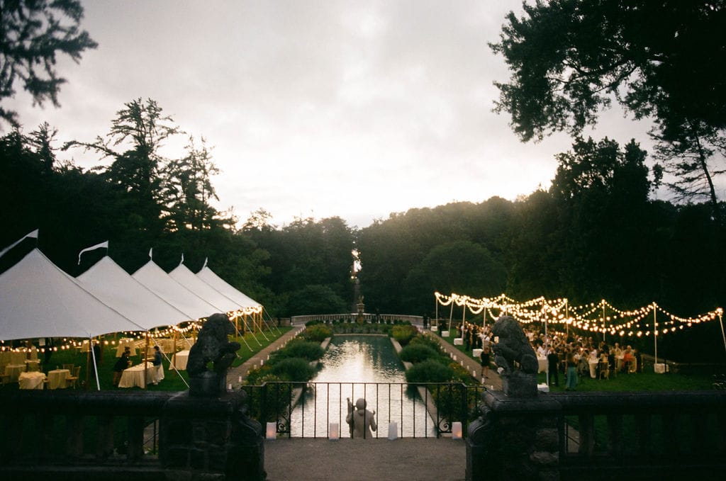 My goal was to capture the space from the best angles that allowed the sheer scope of the story to be told. There was a lengthy meadow of flowers between the ceremony stage and the guests so I stuck around long enough to grab those shots during recessional and sprinted up the stairs in order to also grab this shot that had guests behind them. I’m a big believer in having people in the photos whenever possible so I’m always mindful of choosing the angle that allows that to happen.